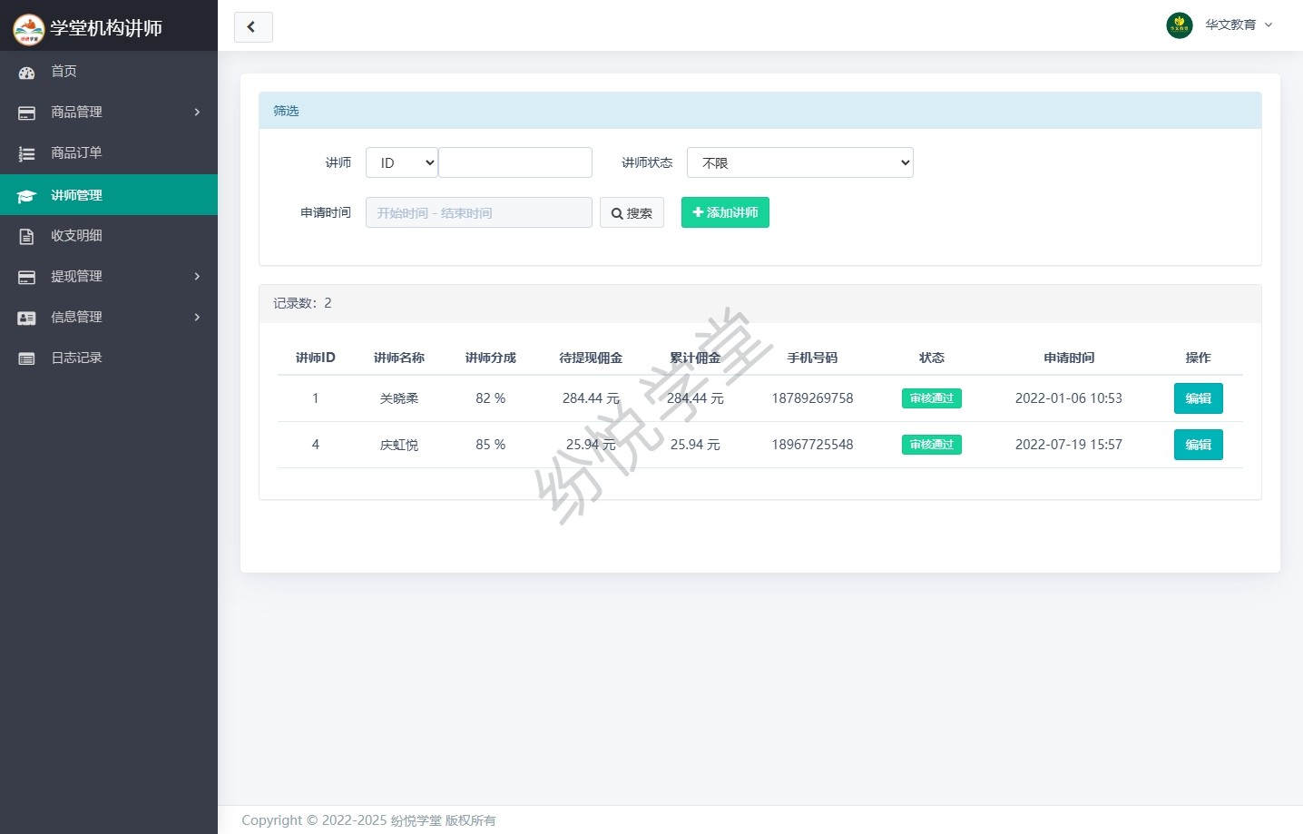 学堂机构讲师(插件)